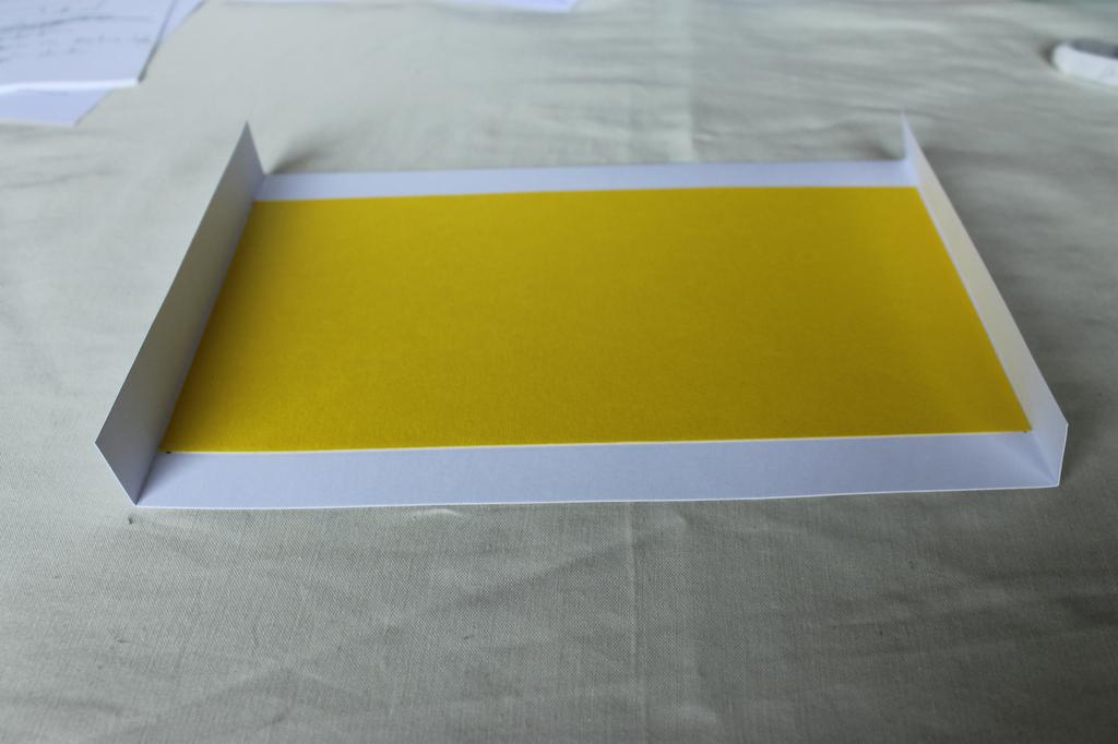 na parte não texturada da cartolina amarela e colamos, deixando a margem branca superior e inferior de 2cm e as laterais de 2,5cm.
