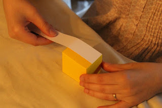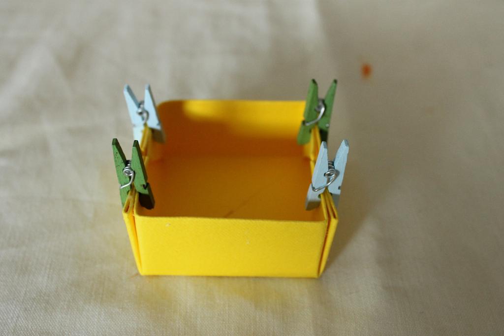 agora montar a gaveta, dobrando para dentro os cantos e aplicando cola em cada