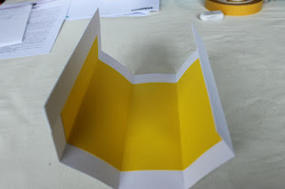 nas linhas a azul…. E cortamos nas linhas a tracejado. Colamos fita dupla nas