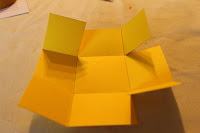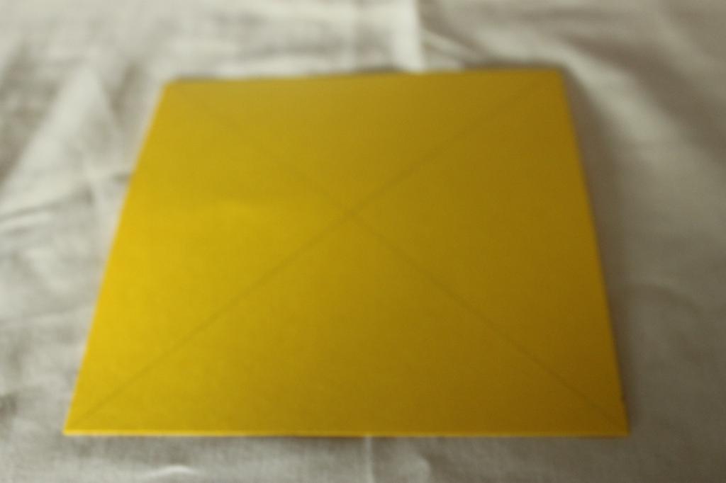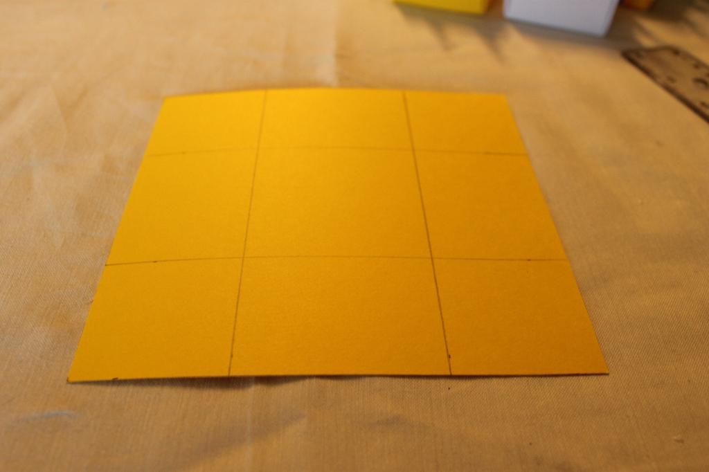 agora construir a tampa. Pegamos no quadrado de cartolina amarelo (15cmx15cm) e marcamos