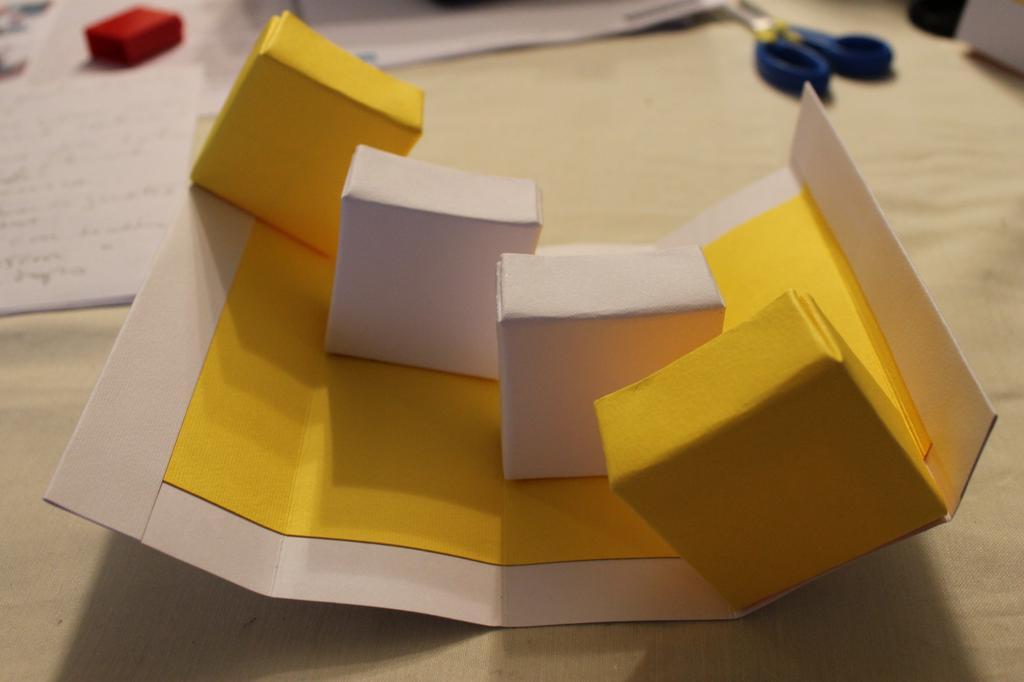 amarelas e duas brancas. Pegamos então num dos quadrados de cartolina (10cmx10cm) e